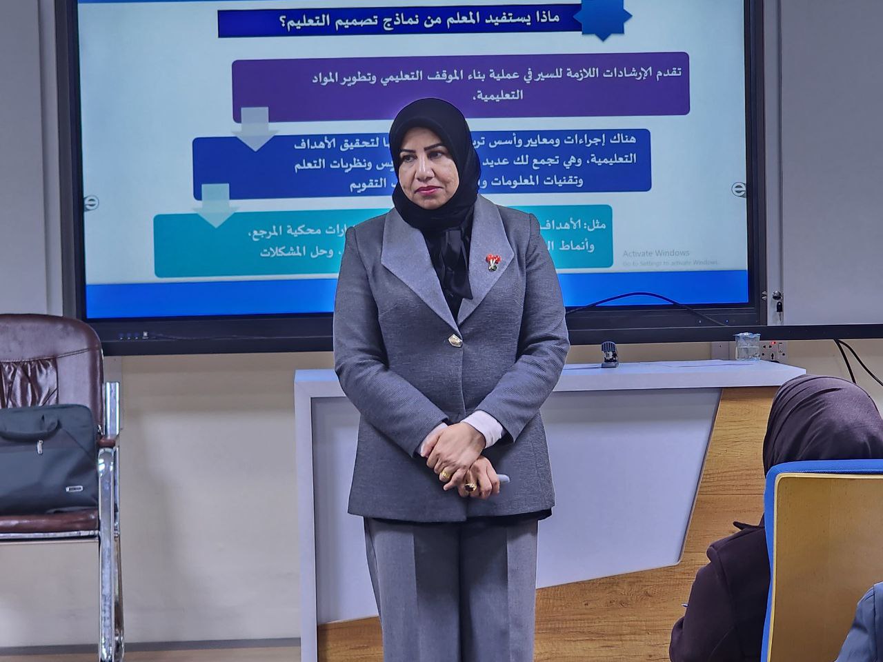 The lecture, part of the sixth Teaching Methods course within the applied specialization, aimed to introduce participants to how to design a lesson professionally and effectively, benefiting both instructors and students by saving time and effort for both parties.