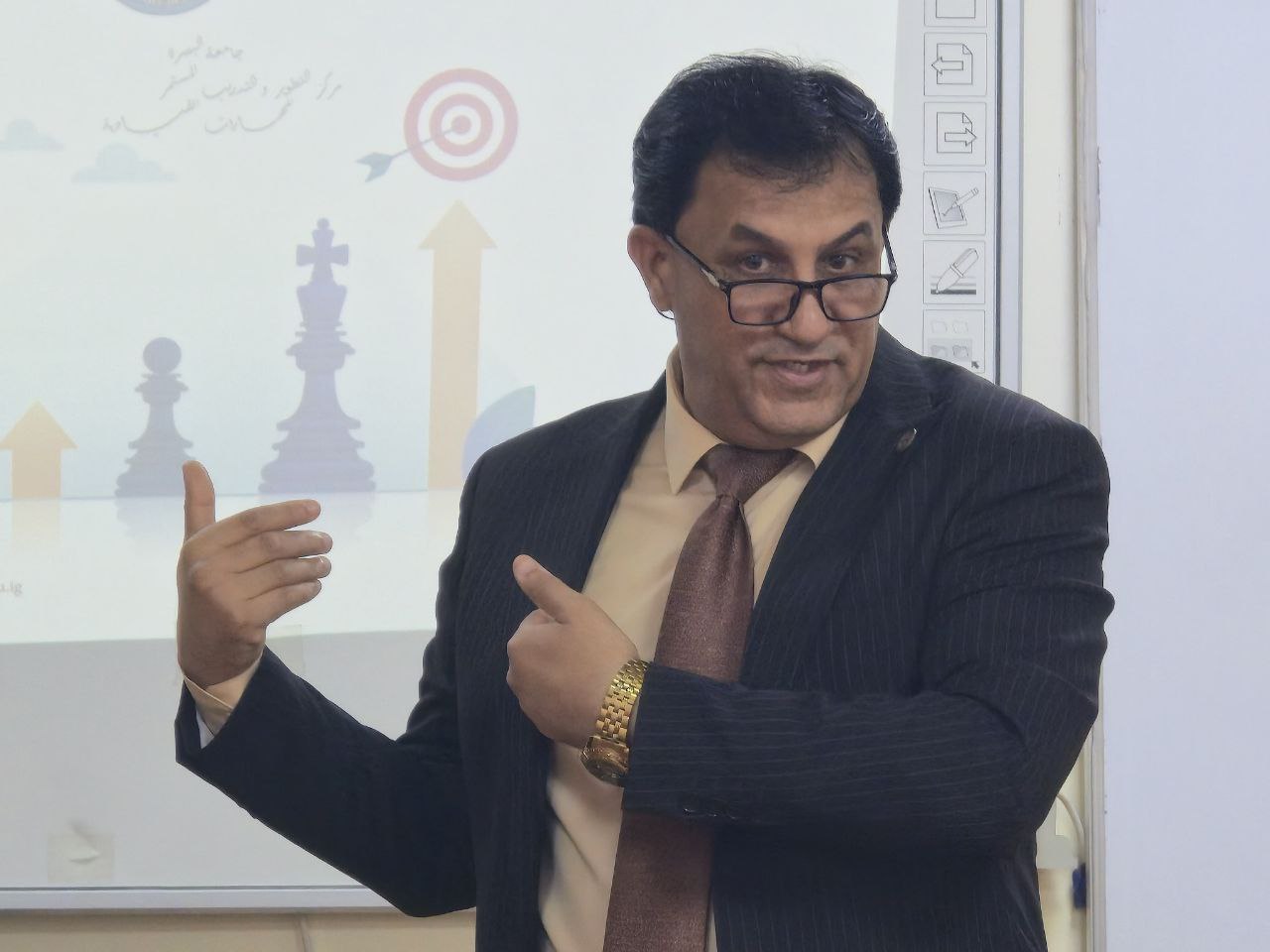 Delivered by Lecturer Basel Jabbar Ajeel, the course covered several key topics, including the distinction between a manager and a leader, the most important leadership skills and ways to develop them, the attributes of a successful leader and methods of acquiring them, as well as the effective utilization and application of individual abilities and skills across different administrative styles.