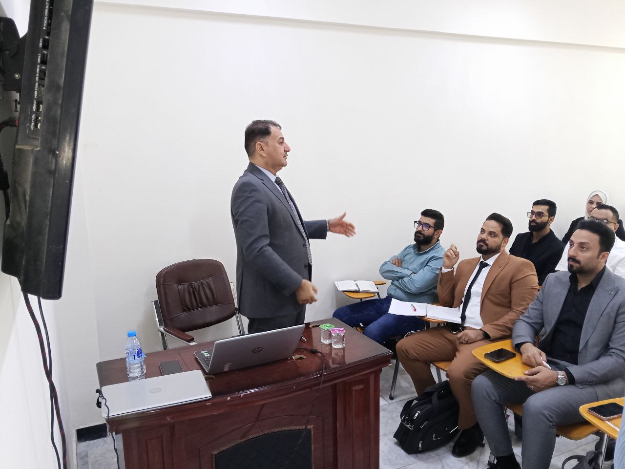The lecture, delivered by Dr. Munaf Abdul-Kadhim Al-Qattan and faculty member Marwa Mousa Atwan, addressed the concepts of measurement, evaluation, and assessment, in addition to the different types of tests. It further highlighted the role of measurement and feedback in developing the skills necessary for effective evaluation and assessment using appropriate tools within the administrative field.
