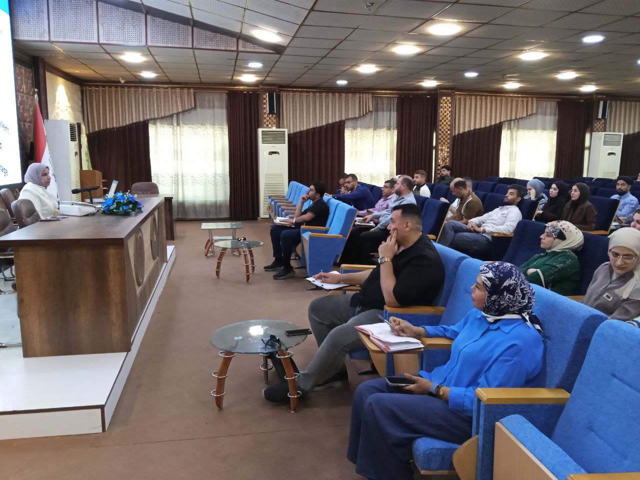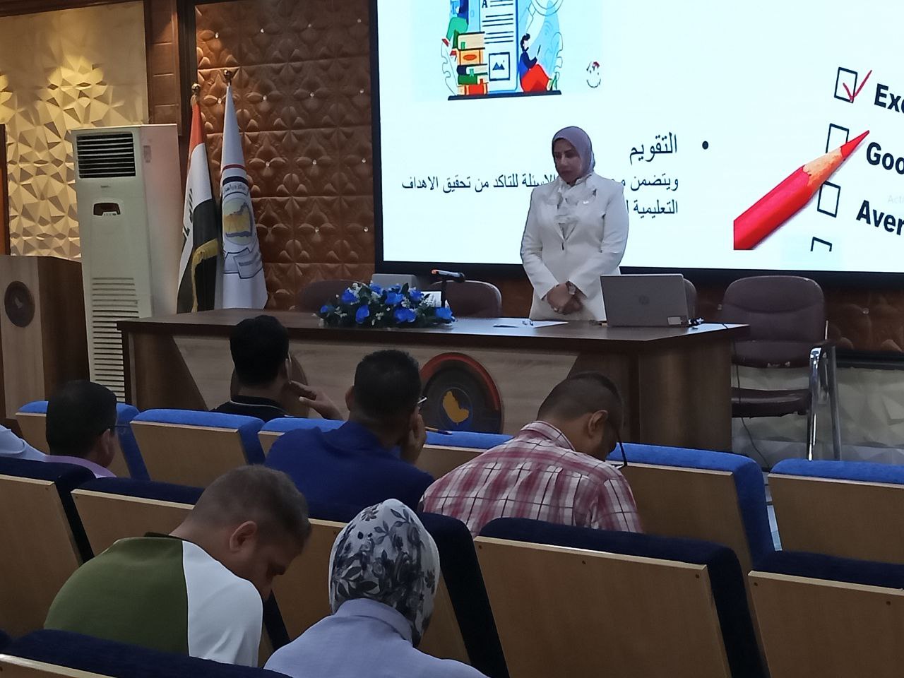 The lecture, delivered by Dr. Zainab Ali Khalaf, addressed the concept and importance of the e-learning course, as well as the types of e-learning and methods for designing a distinctive lecture that supports student interaction.