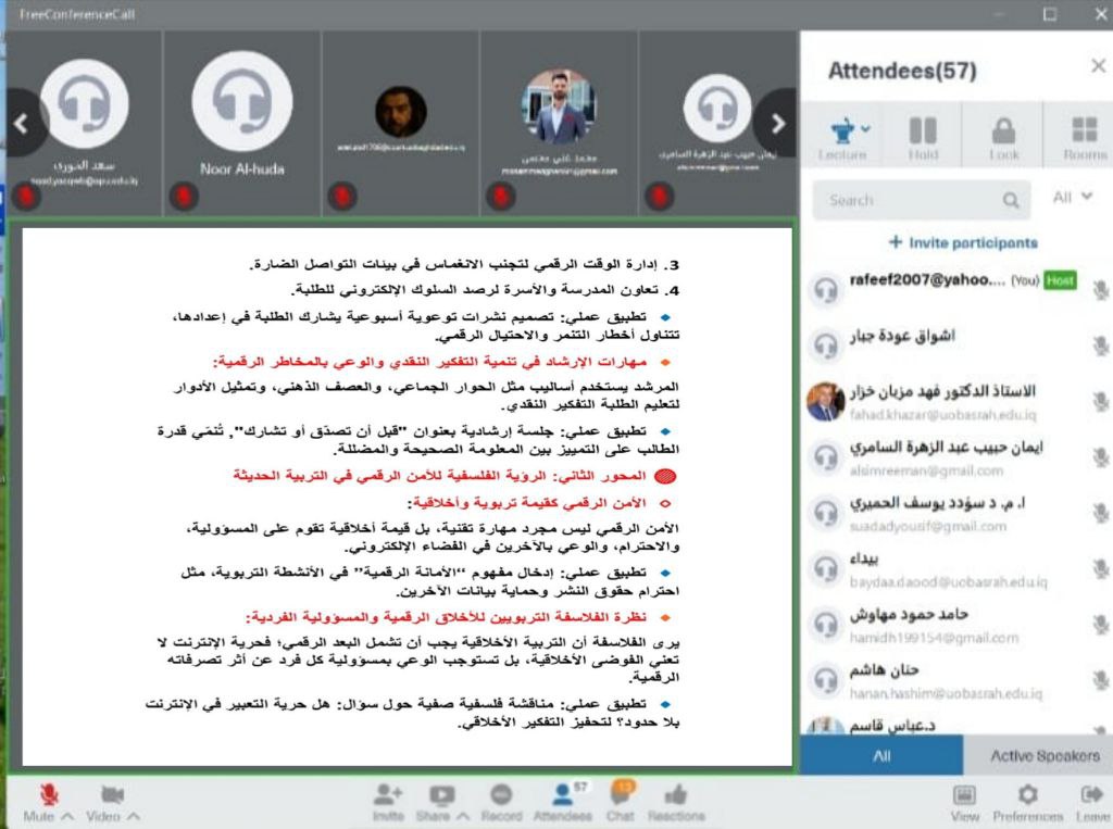 The Continuing Education Center at the University of Basrah, in collaboration with the College of Education for Women, organized an online seminar titled “Digital Personal Security in the Virtual World: A Guiding Vision and Educational Philosophy,” with the participation of several researchers and specialists in the educational field.