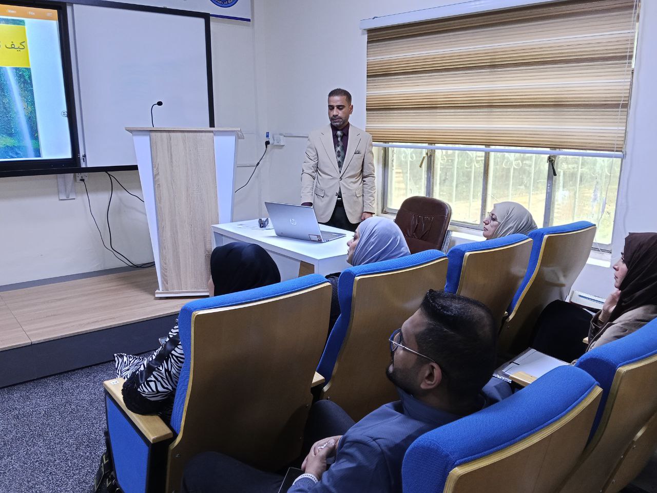 The lecture, delivered by Dr. Mustafa Abdulridha Kadhim, Director of the Continuing Education and Development Center, presented the components of teaching methods alongside practical examples of facilitation strategies, contributing to enhancing trainees’ abilities to apply them effectively within the educational environment